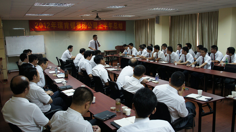 李学林董事长在做半年总结
