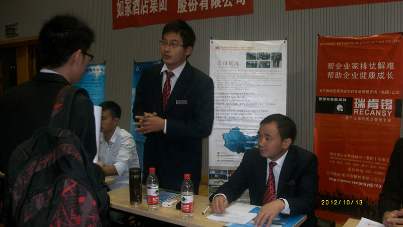 集团公司赴武汉招聘,瑞肯锡进军中西部市场拉开序幕2012年10月16日10.12-10.14 李学林董事长、蒋圣勇副总带队去武汉招聘,集团“223计划”拉开序幕。招聘组接受咨询 武汉职业技术学院现场,瑞肯锡展位前人头攒动 湖北电视台“新闻360”慕名前来采访 武汉交通职业技术学院招聘现场 招聘组成员合影 李总在做现场培训 参加培训的学员合影 扫描图片,或长按选择『识别图中二维码』关注我们公众号!上篇:瑞肯锡感恩五年行拉开序幕下篇:首届“瑞肯锡杯”商务团队驾驶技术比赛在无锡阳山举行