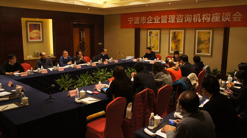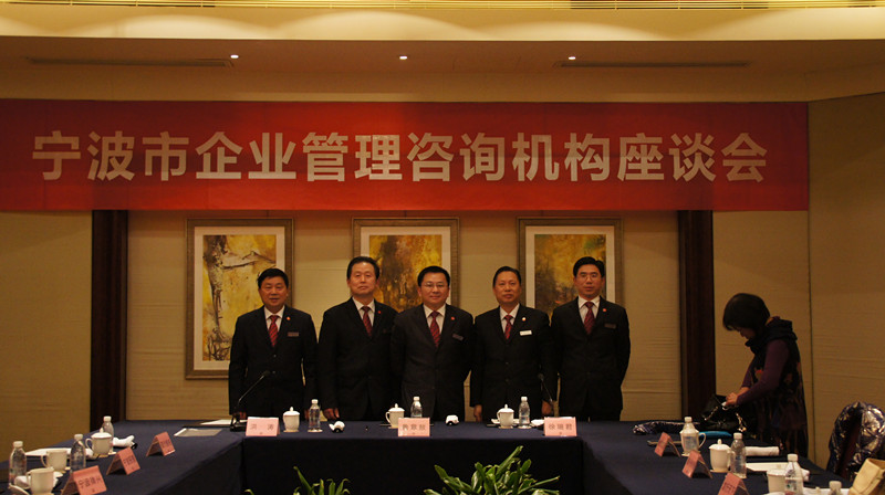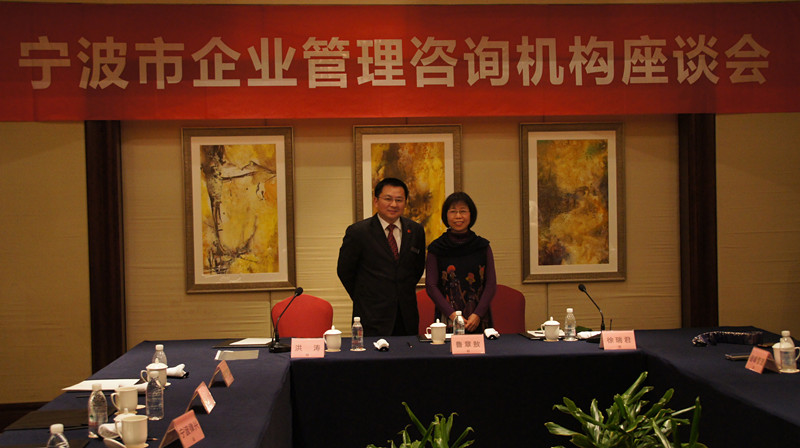 咨询机构座谈会现场;经信委领导浏览“瑞肯锡管理快讯”(宁波特刊);经信委领导鲁主任和李董合影;与会顾问组合影(左一为首次参会的浙江副总顾问陈晓华);同行不是对手——李董与台湾建峰叶玉娇副总合影;顾问组与经信委领导、......