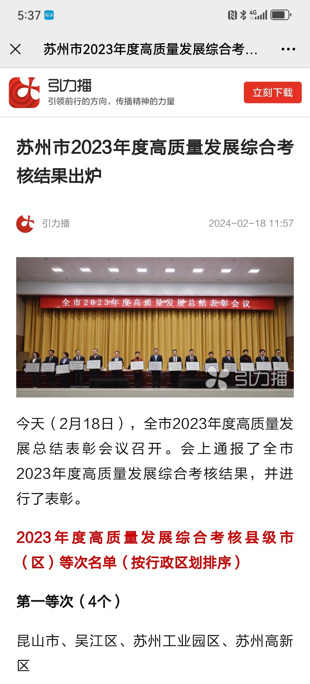 瑞肯锡重点客户苏州创元荣获2023苏州高质量发展第一等次第一名